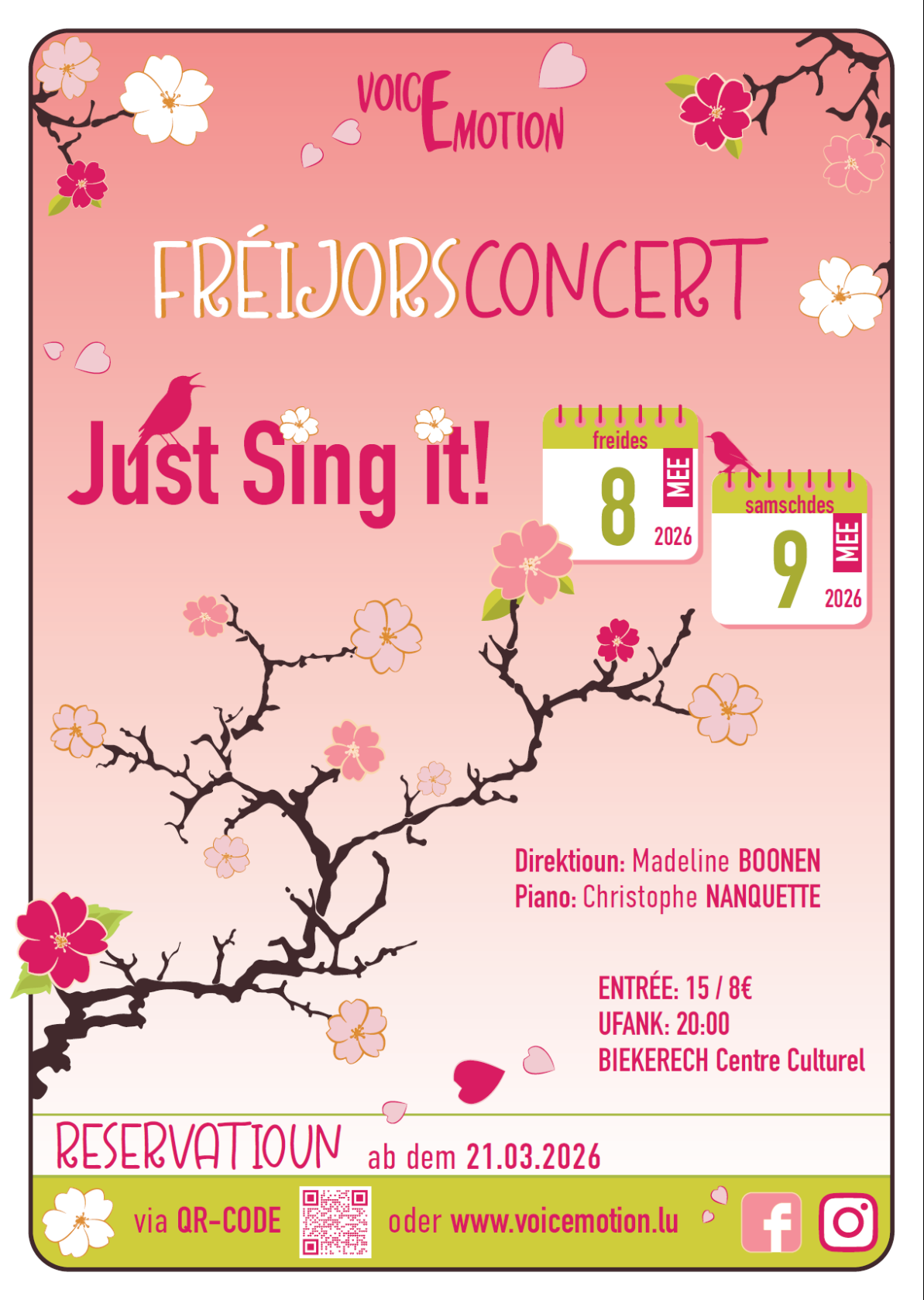 Mir sinn eng flott an dynamesch Chorale mat 40 Sängerinnen a Sänger aus dem ganze Land, ënnert der Leedung vum Madeline Boonen.